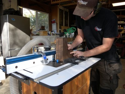 Now you’re perfectly in-line with your bit to run some stock through to cut the tapered sides of the cleat. You can manually set this if you want or need to—just run some test pieces and fine-tune your settings until it cuts a perfect “taper to nothing.”