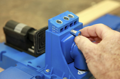 | The dust port snaps in or out, and it’s a useful addition, too. If you keep the dust out of pocket holes, your drill bit will stay sharper longer! | ![]() |