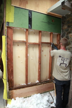 We finished installing the stone and the steel jambs in late September, just in time for the start of firewood season. But I still had to install the insulated doors on the back of the firewood box, before the weather really turned cold.
