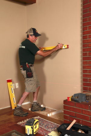 | I trust lasers a lot, but they don’t tell you everything, and besides, I really like getting my eye on a bubble vial, especially to check that the cabinet is plumb. | ![]() |