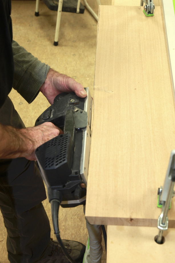 I’m not sure how for so many years I managed without a jointer; it’s certainly one of the most important tools in my shop. Once they were assembled, I measured the I.D. of the face frames AGAIN, subtracted 1/8 in. for each hinge and for the gap at the ‘strike’ or ‘lock’ stile, then jointed all the doors down to the proper dimension.